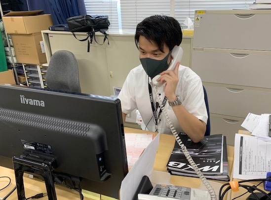 お客様へ点検時期のご案内電話をするNスタッフ(2020年入社)です