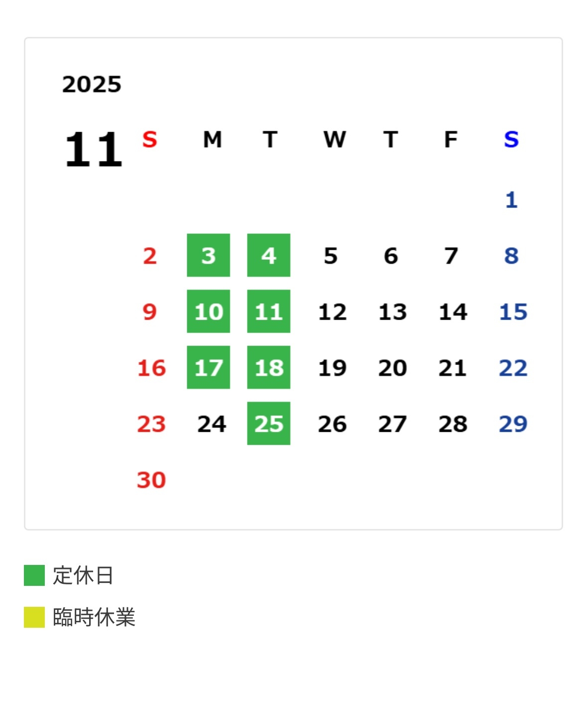 11月の定休日