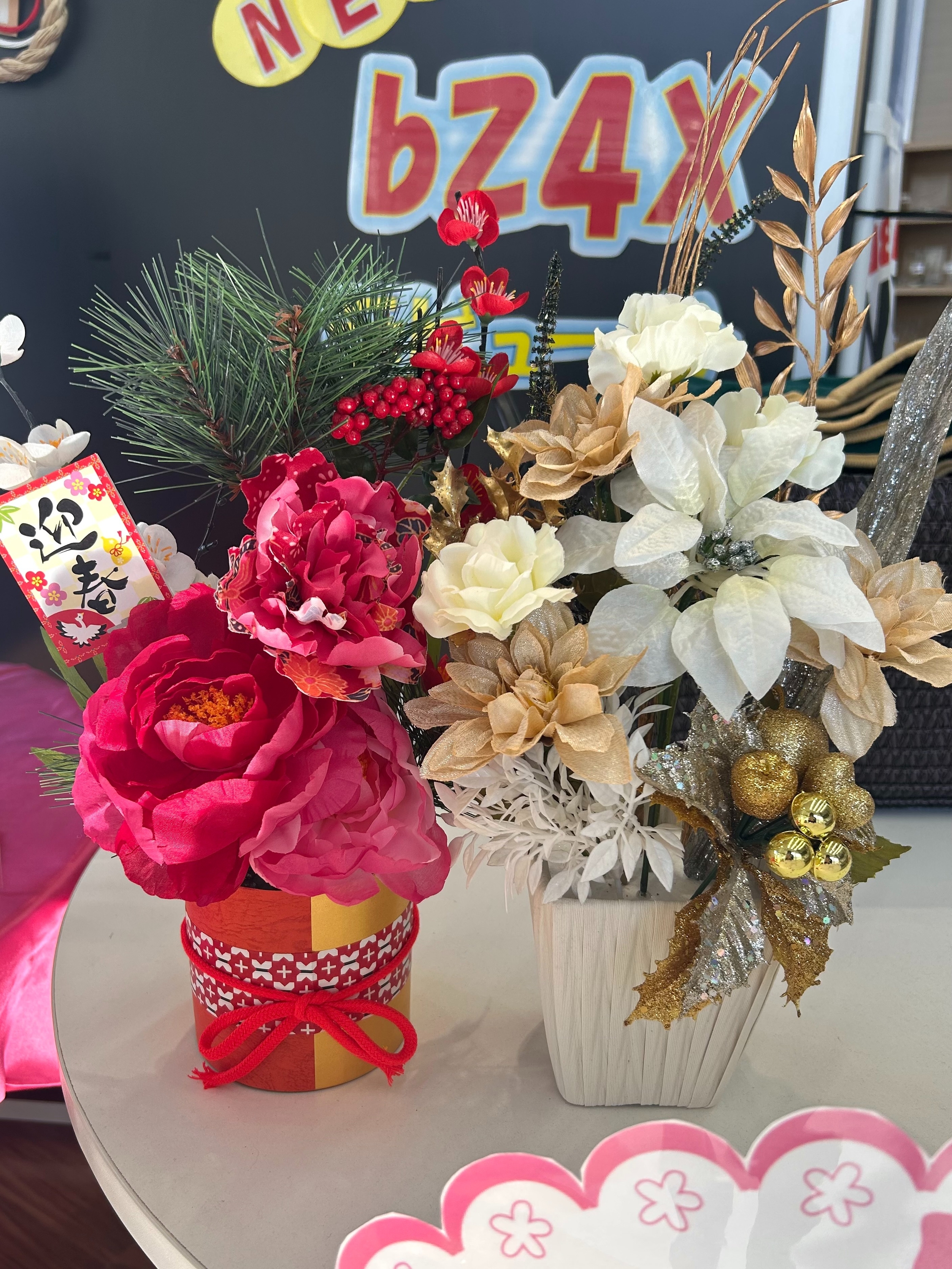 華やかなアレンジメントや縁起物とともに、