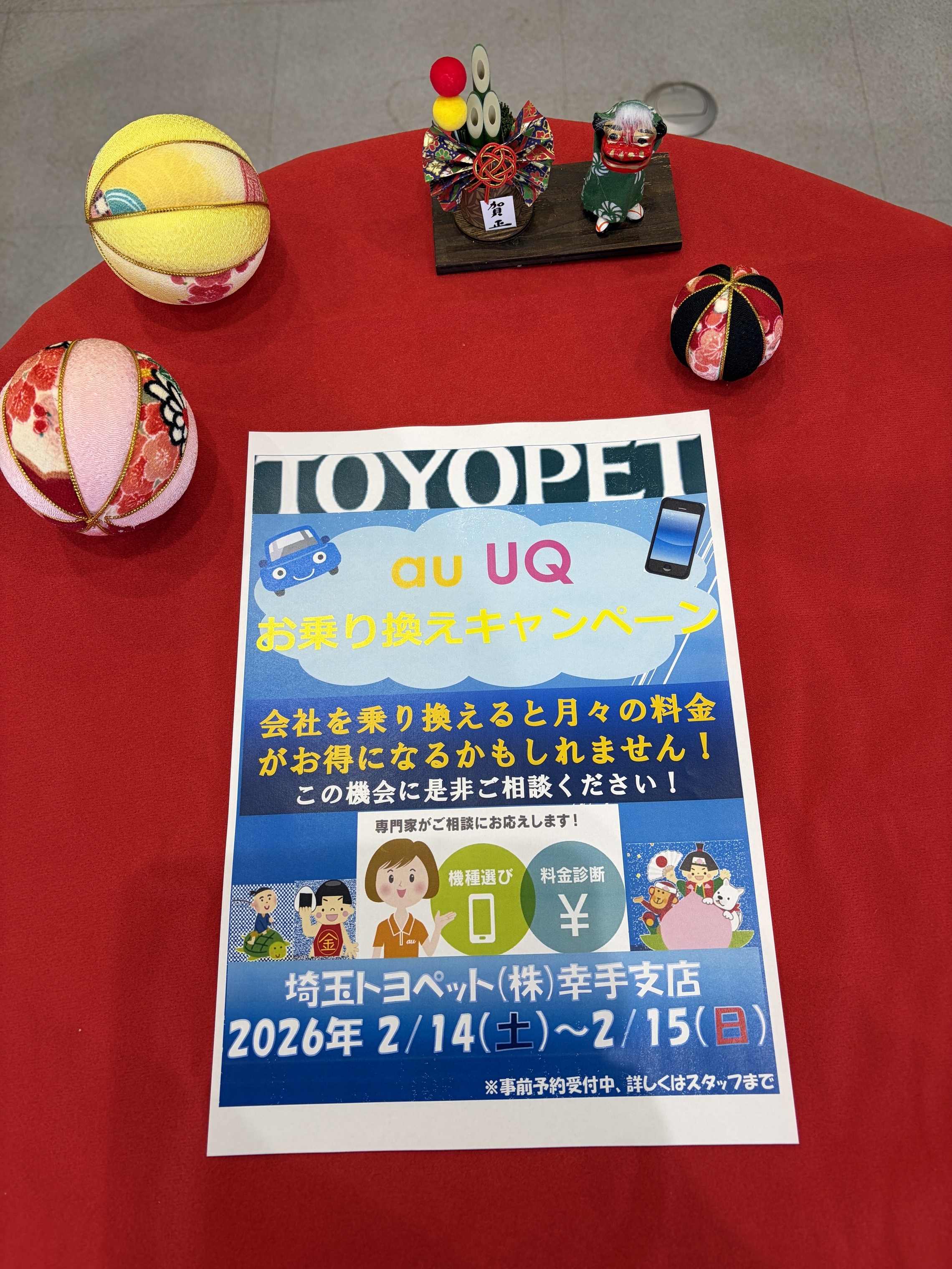 2/14(土)、2/15(日)こちらの2日間で携帯電話のイベントを開催致します。携帯電話の料金が高いとお悩みの方、au,UQの専門スタッフが対応致します。事前予約、事前アンケートも行っておりますので当支店スタッフにお問い合わせください(^▽^)/