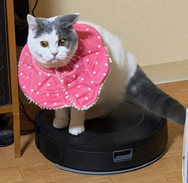 手術をして桜のお花型のエリザベスカラ-を